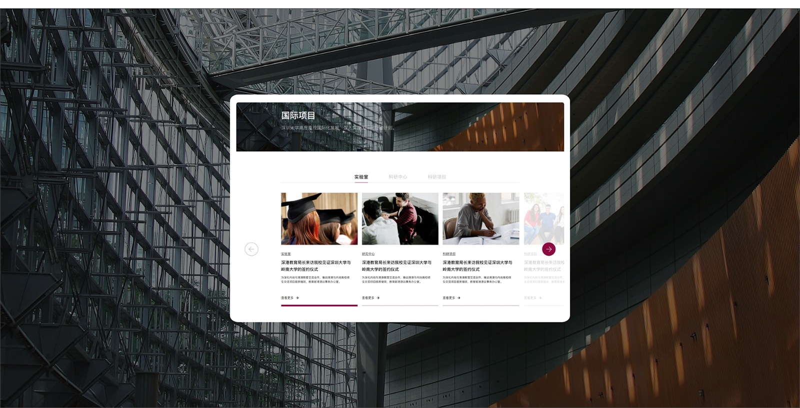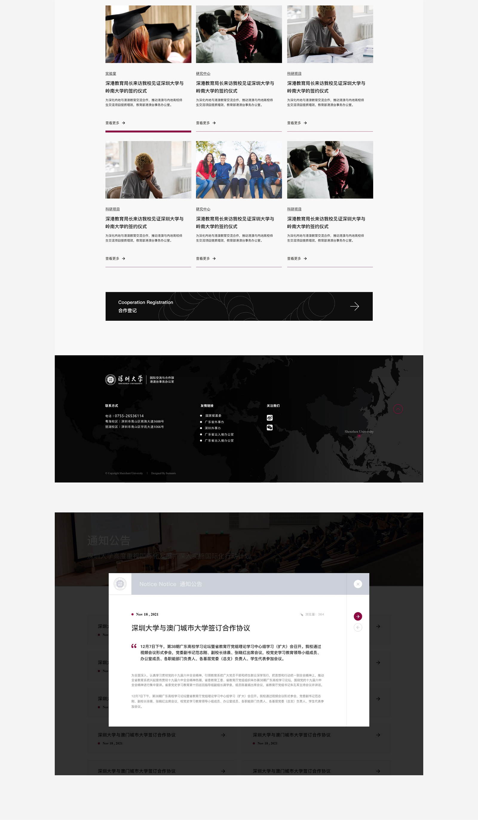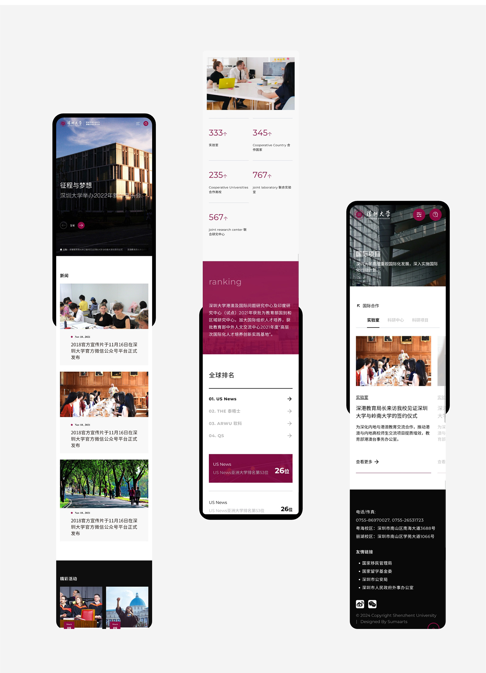 深圳大学与境外300所高校(机构)建立了不同形式的交流合作关系,遍布全球50个国家和地区。国际化师资建设方面,目前我校聘用了258名外籍教职员工(不含访问教授),包括特聘教授、专职研究人员、全职授课教师、博士后等,占深大教职员工的6.4%。